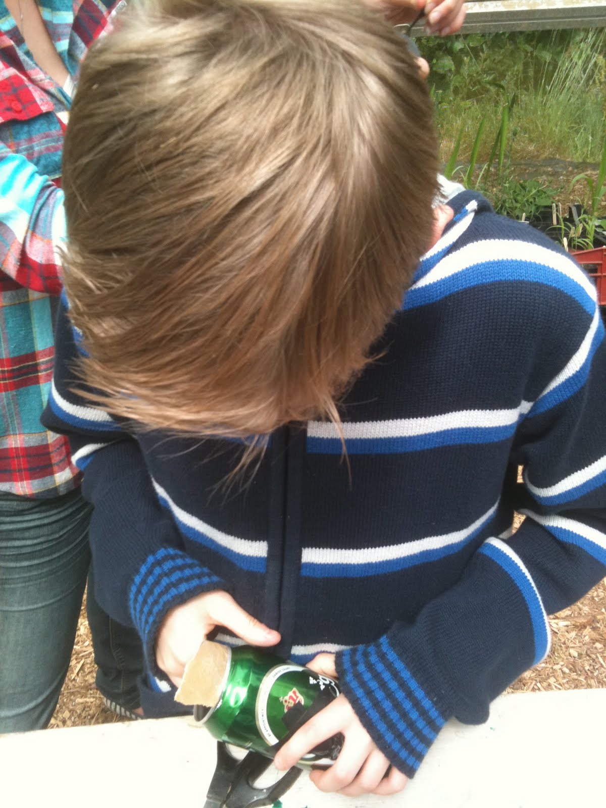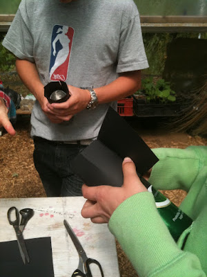 Then we had to pierce a hole with a needle in the can, cover it with tape and slip in the photographic paper in the dark-room sack