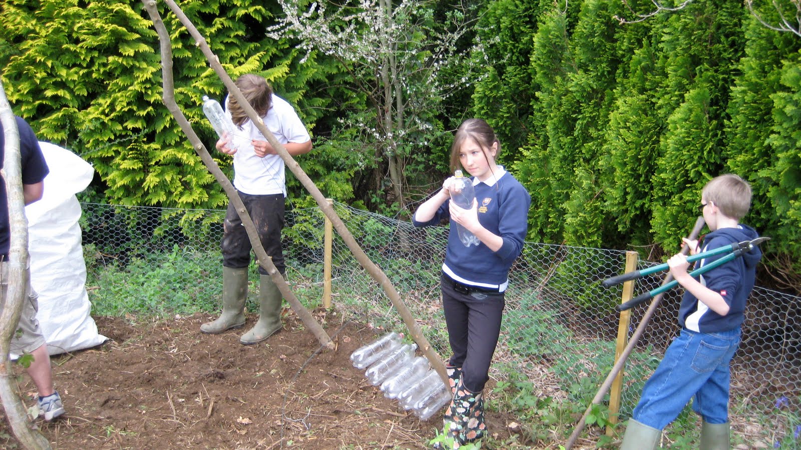 One of the Artists’ Residencies at the project was for a commissioned artist who specialises in Eco-Art with a practical aesthetic to come on board and work with the young people to make something out of recycled materials. There was a very rough brambly corner at the Tall Trees allotment which lent itself well to the design for a plastic bottle shelter. The design was based on a species of plant found in the garden ‘Arum maculatum’ commonly known as Cuckoo Pint, so the work was resonant of the garden and site specific.