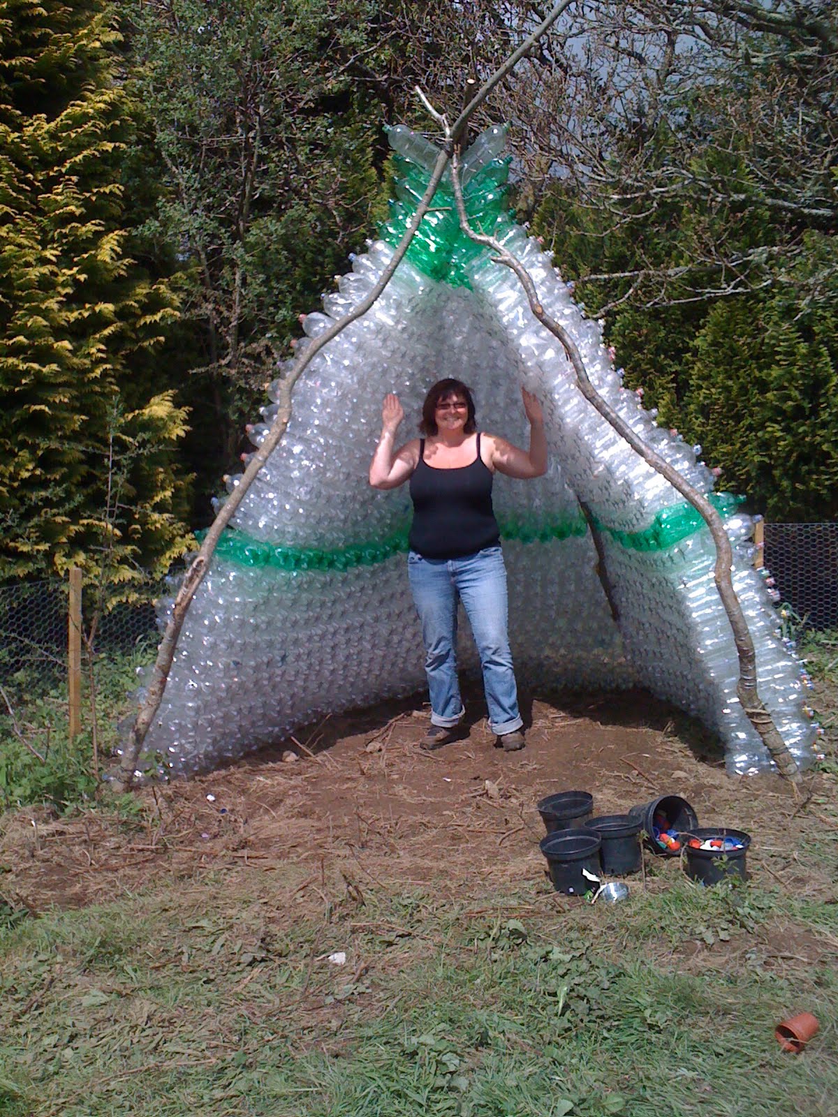 The project took a whole week but we are delighted with the finished shelter…it has created a huge talking point at the garden and looks very impressive. The best thing of all was the lessons and discussions we had around the build. Discussions about plastic waste, peak oil, waste. hunger, recycling, homelessness and communal activity were all very interesting and the young people came up with some very sound theories and ideas of their own.