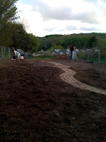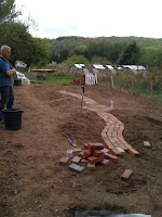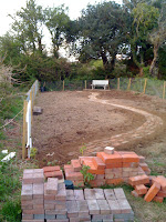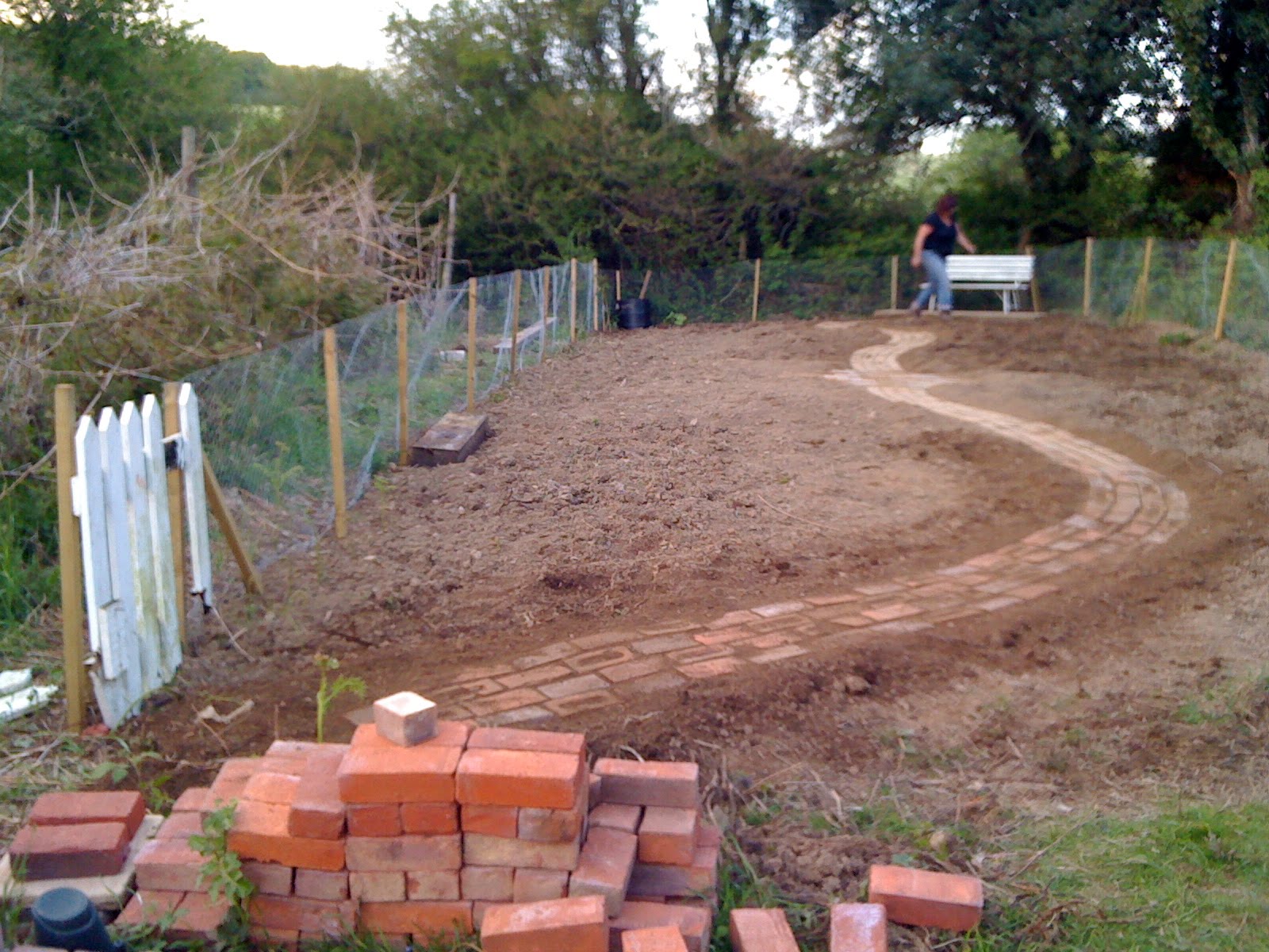 The edible garden at flowerpots is starting to take shape…after the ‘aqusistion’ of a few hundred red bricks, and the purchase of some more, the path has been laid… I think it looks beautiful, and cannot wait to see it twisting in and around our plants! 🙂