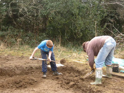 First real day of the Straw Bale Shelter Build Project. The foundations that were marked out and started on the initial visit are starting to take shape. The earth is good quality topsoil so we are saving it to ship up to the allotments.