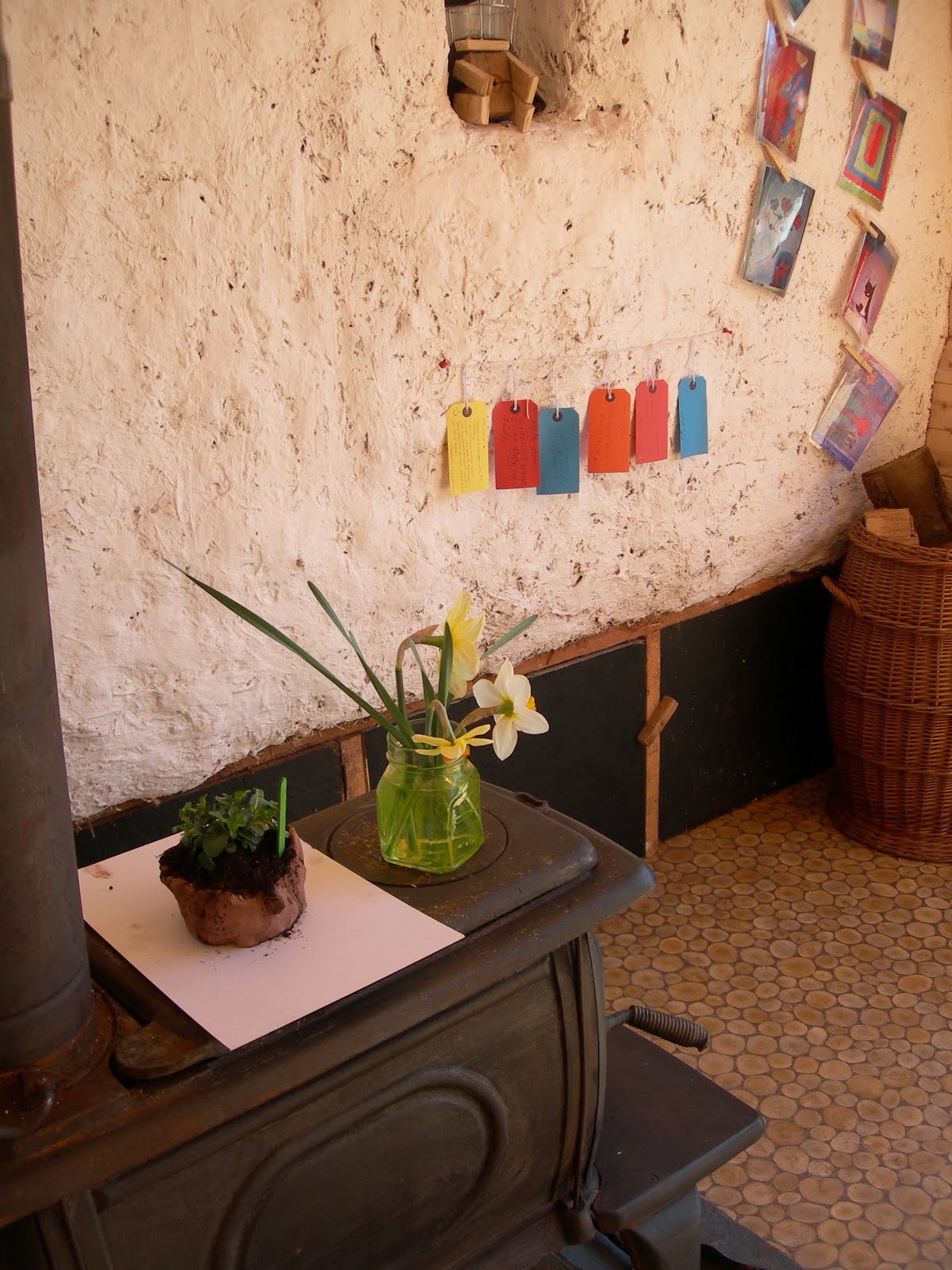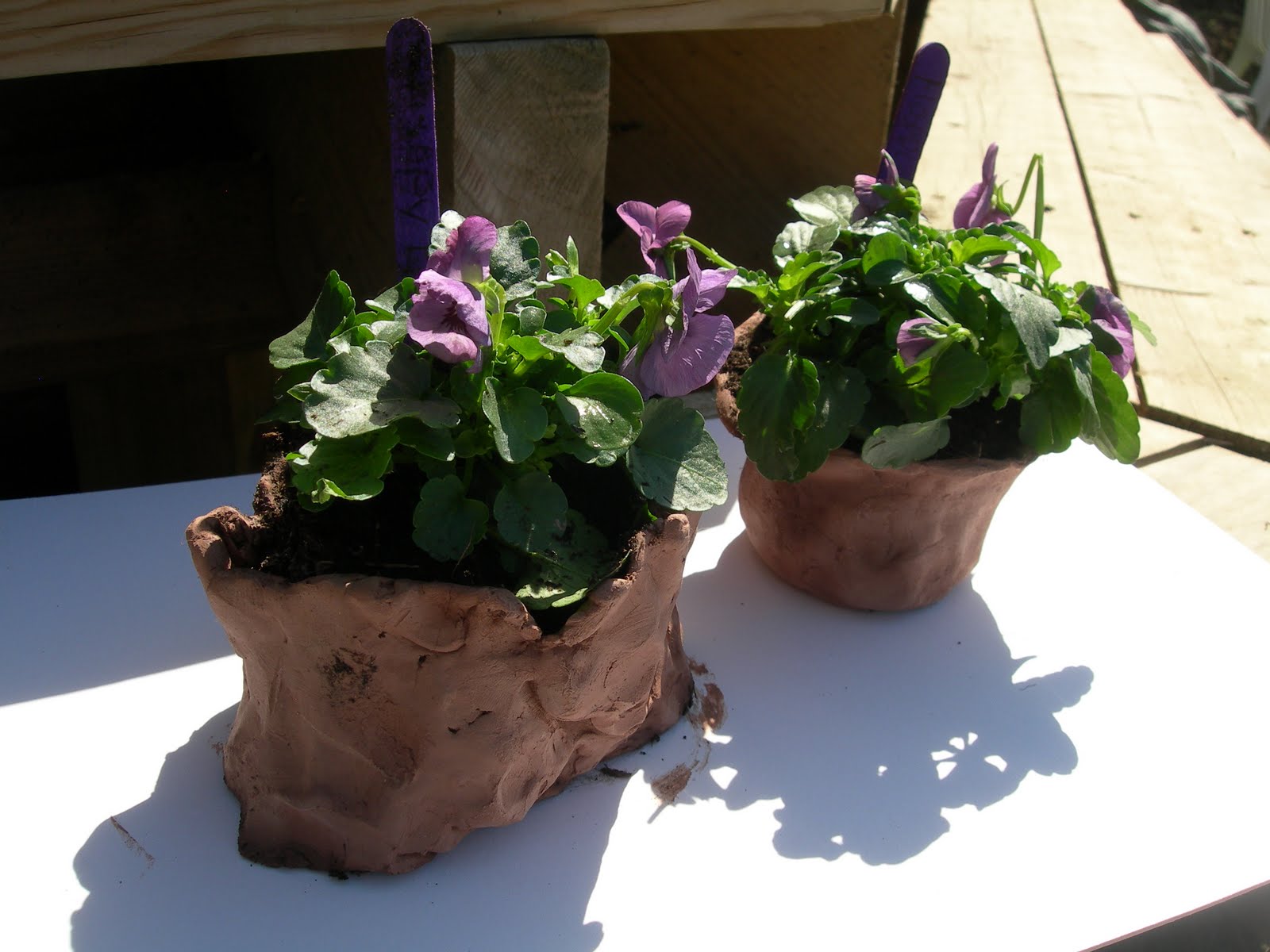 …planted the clay pots we made last week with flowers to take home as gifts…