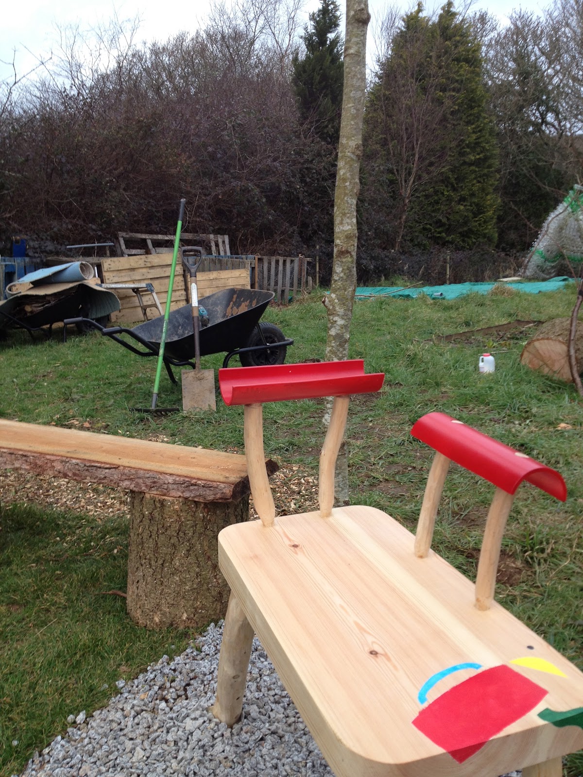 and we aded them to the pit surround and then added our wonderful funky chairs that we made with student Ema
