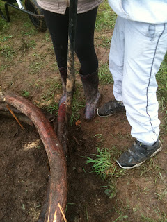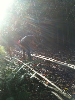 We began by going on an expedition to the woods to harvest some trees to make the pergola and surround.