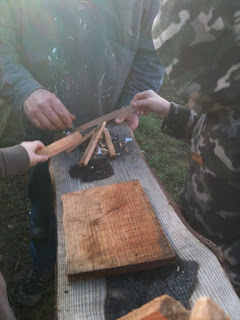Wood shavings, tissue and a flint