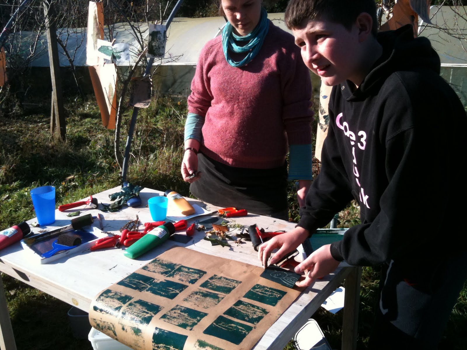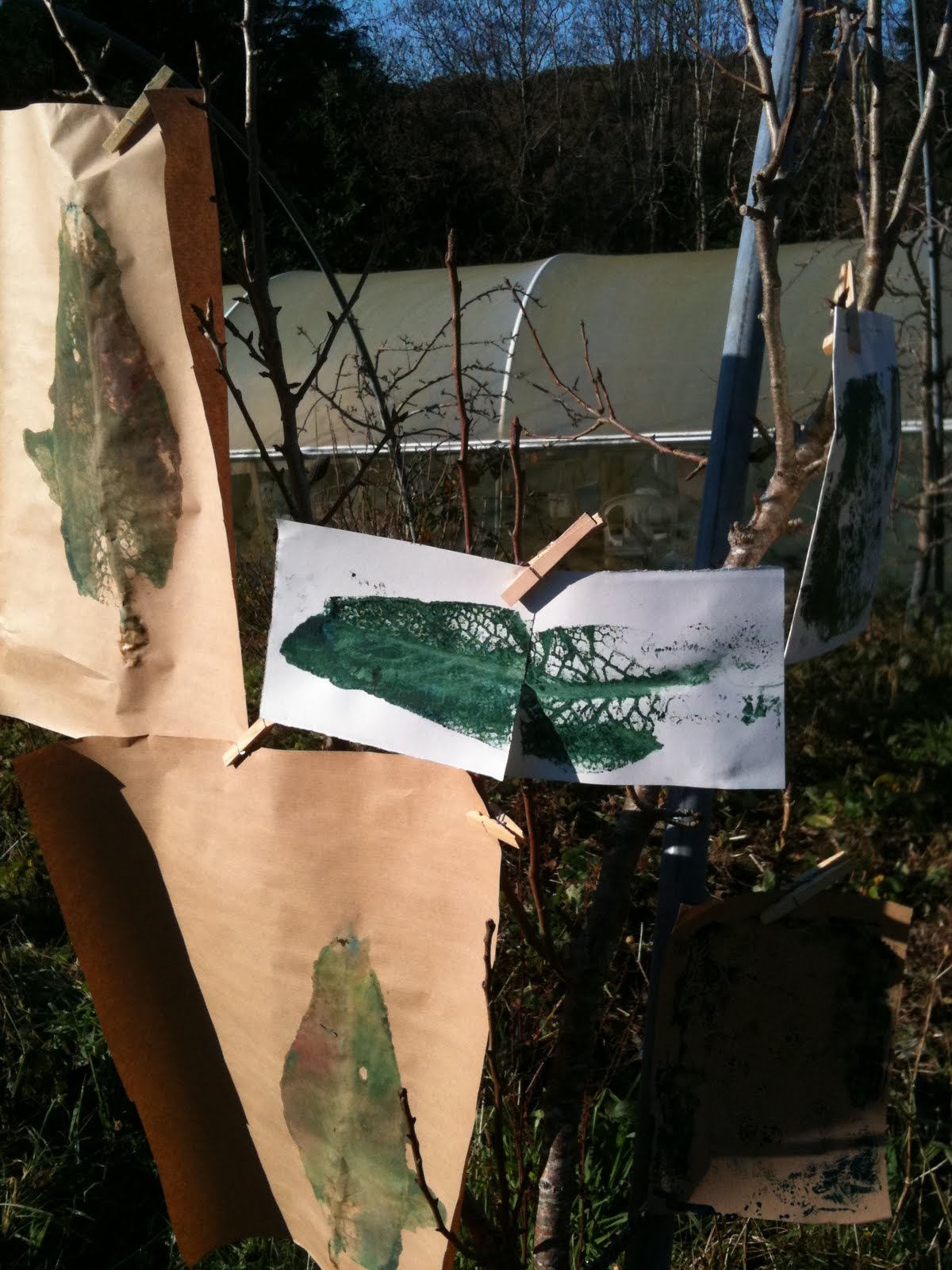 Garden Art – Leaf Printing Making Christmas Wrapping paper using leaves as inspiration from the garden