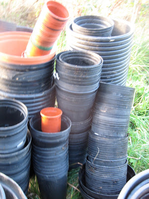 Up at ‘Flowerpots’ am keen to get all the unused pots out from under the brambles so that we can get on with moving the damaged polytunnel and digging the new allotments.