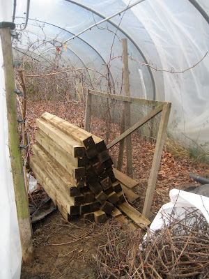 Sat 16th Jan. Spent the morning carrying 50 fence posts and 10 rails up the hill to the garden. Was worried about the wood being left in the car park, vulnerable to opportunists. Hard work. Good exercise.