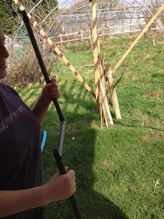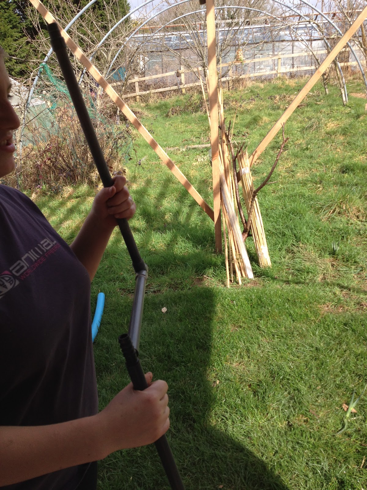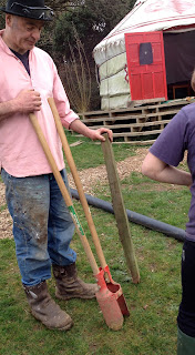 We dug a test hole to start creating a large windmill, using a drainpipe and bit of old polytunnel pole as a shaft.
