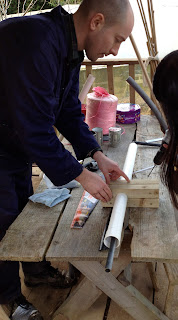 Making the crank for the winding mechanism made form old pits of plumbing pipe
