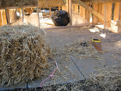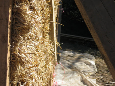 The straw is an amazing material, it smells sweet and always warm. It is very tactile and very forgiving as a building material. The inside of the building is really warm and seems to hold the heat well. It feels so right.