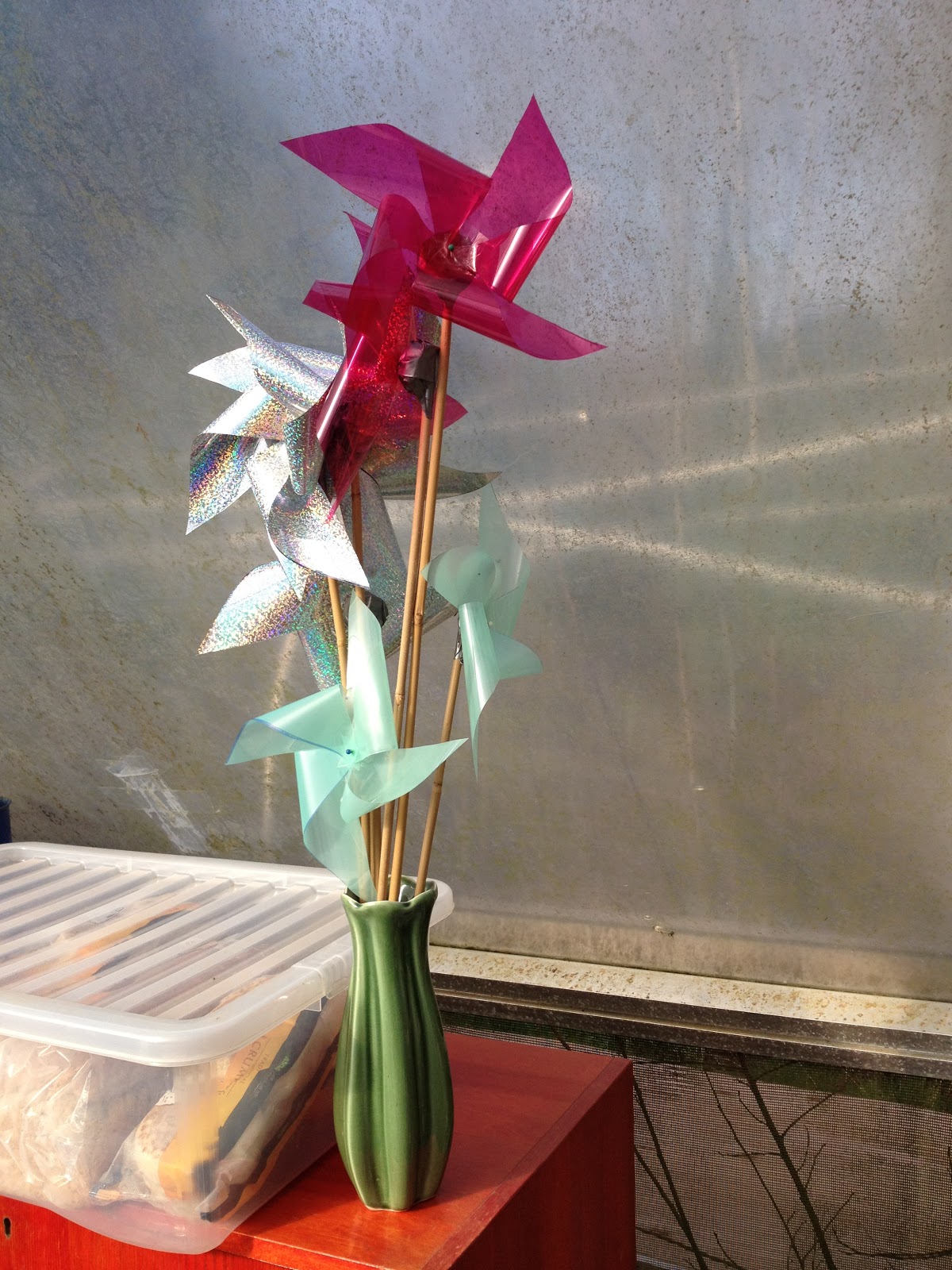 These bottle windmills pumped the button up and down on the thread and depending on the wind direction the button went either up or down. We now understood about wind power and pumping.